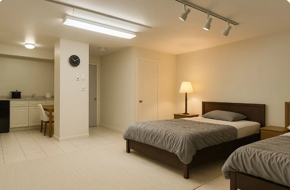 [숙소 요약] - 뉴욕 다운타운 플러싱에 위치한 가성비 독채 - 도보로 기차역까지 3분 맨하탄까지 기차로 20분 - 더블 침대 2개와 소파 베드 1개로, 다양한 인원 구성에 맞춰 편안하고 유연한 숙박이 가능 [내부 환경] - 개인 주방, 식탁, 소파, 책상, 화장실이 포함되어 있어 다른 사람과 공간을 공유하지 않고 독립적으로 사용 가능합니다. - 창문은 일반 사이즈이지만, 출입구가 약간 내려가 있는 반지하 구조입니다. [교통 및 위치 안내] - 기차 이용 시: 숙소에서 도보 5분 거리에 있는 Murray Hill 역에서 기차를 타면 맨해튼 펜스테이션까지 약 25분이면 도착합니다. - 지하철 이용 시: Main St 역에서 지하철을 타면 타임스퀘어까지 약 40분, 환승 없이 바로 이동할 수 있습니다. - 주변 환경: 숙소에서 1분 거리에 노던 블루바드(Northern Blvd) 중심도로가 있습니다. 그 주변에는 대형 한인마트 두 곳, 다양한 식당가(먹자골목), 은행, 핸드폰 매장, 세탁소 등이 밀집해 있어 생활과 관광에 모두 편리한 위치입니다. [아래 사항을 꼭 확인해 주세요!] - 숙소 내 물탱크를 통한 수도 공급을 하고 있어, 많은 인원이 한번에 욕실을 사용할 경우 지장이 있을 수 있습니다. - 체크인/아웃 시간을 준수해주세요. (예외상황 발생시 미리 말씀해주세요) - 예약인원 외 추가인원은 투숙 및 출입이 불가합니다. - 객실 내 금연입니다. - 이른 아침 / 늦은 시간에 소음을 자제해주세요. - 숙소를 깨끗하게 사용 부탁드립니다. - 이용 중 비치된 시설물 및 구비물품의 분실, 파손 시 별도로 가격을 지불해주셔야 합니다. - 부주의로 인해 발생된 안전사고 또는 귀중품(현금포함) 분실 및 파손에 대해서는 당사에 책임을 물을 수 없습니다. - 예약신청시 캘린더 예약 현황이 실 예약 현황과 달라 예약이 승인되지 않을 수 있음을 참고해주세요.
